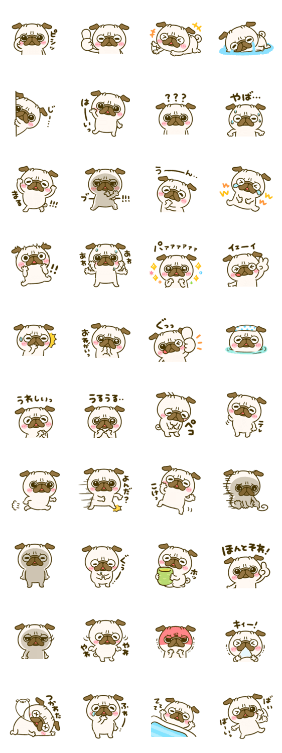 パグちゃんの基本のリアクションスタンプです♡文字少なめでポンポン押せるスタンプです♡