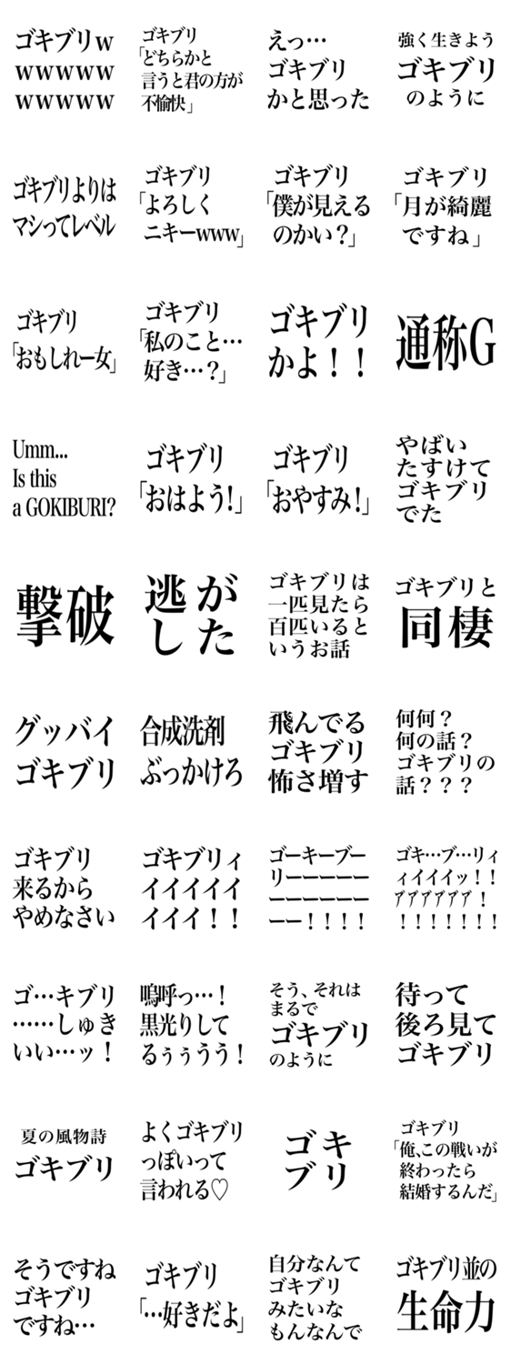 文字だからこわくないよ。みんなで使ってね。デカ文字/文字スタンプ/ゴキブリ/ごきぶり/キモい/きもい/おもしろい/変なスタンプ/ネタ系/oroninet