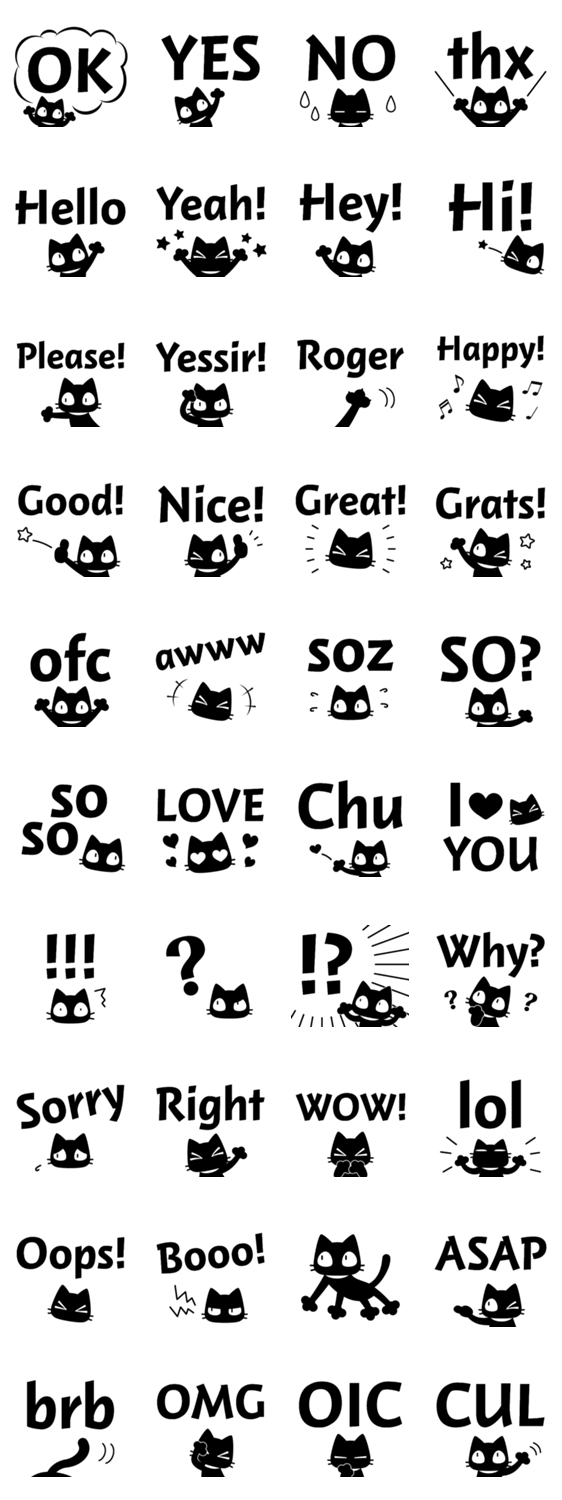 黒猫のでか文字スタンプ(英語版) -LINEスタンプマニア