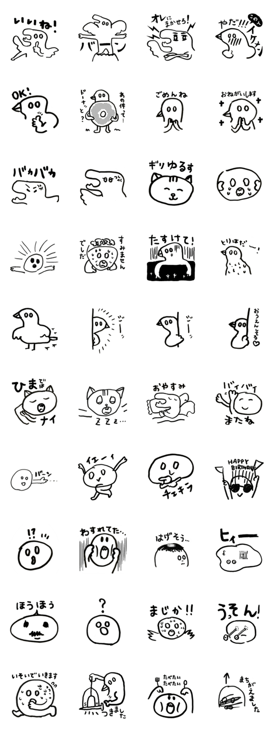 かいじゅう・デスと愉快な仲間たちのシュールなスタンプ。