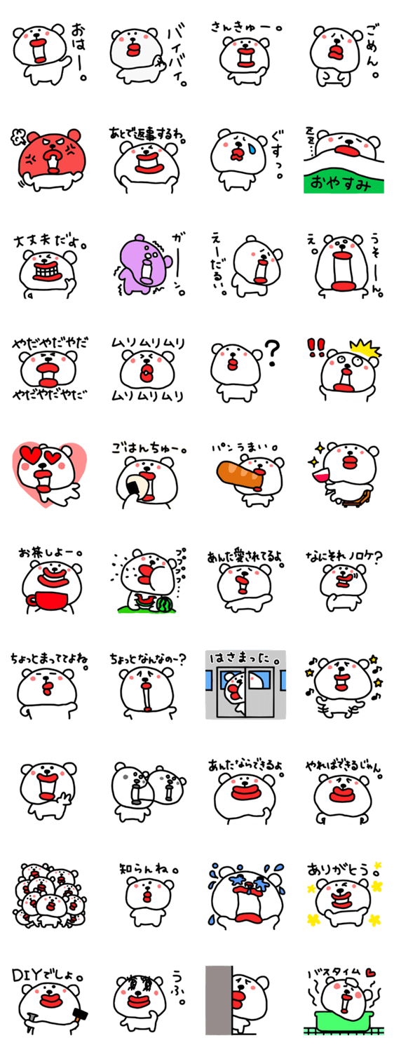 たらこ唇のくま、略して「たらくま」です。性別不明だけど、少しあねご肌みたいです。