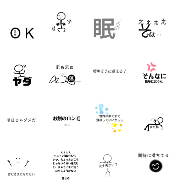 スタンプ説明 ゆるい棒人間付き