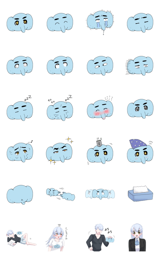 白ネコのあいうえお・・・ってるスタンプ