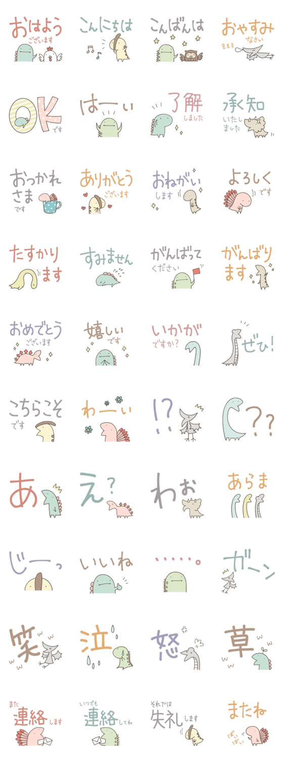 文字が大きくて読みやすい!ゆるい恐竜たちのでか文字スタンプ第2弾です。恐竜シリーズ第29弾。