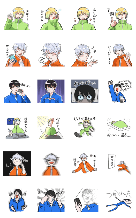ジャージ男子たちがわちゃわちゃしてるスタンプです。