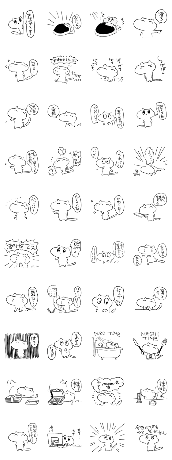 白ネコのあいうえお・・・ってるスタンプ