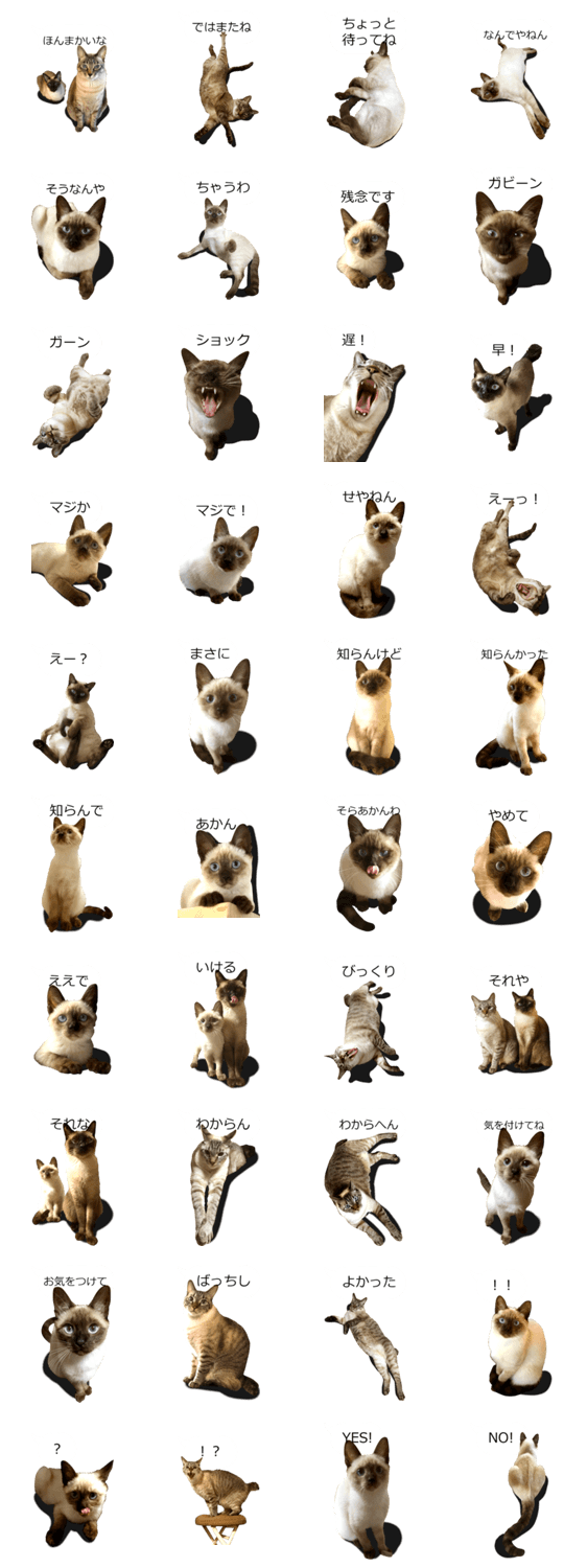 An easy-to-send stamp that collects frequently used words from Siamese cats. These stickers will show up extra large in chats.