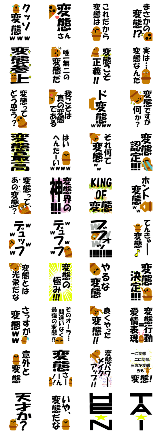 変態による変態の為の変態スタンプです。 こちらはwithハニワです。 ※このスタンプはトークルームで大きく表示されるBIGスタンプです。