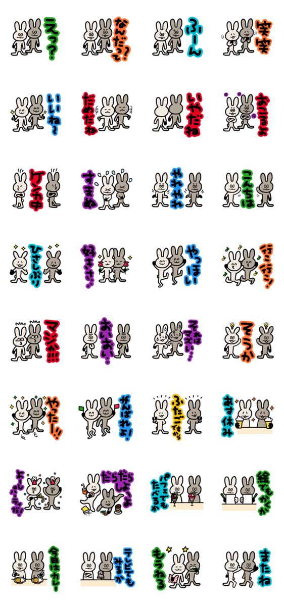 | スタンプ説明 | ふたごのウサロー&ウサジ。いっぱいケンカはするけど、結局仲良しなんだよね。 |