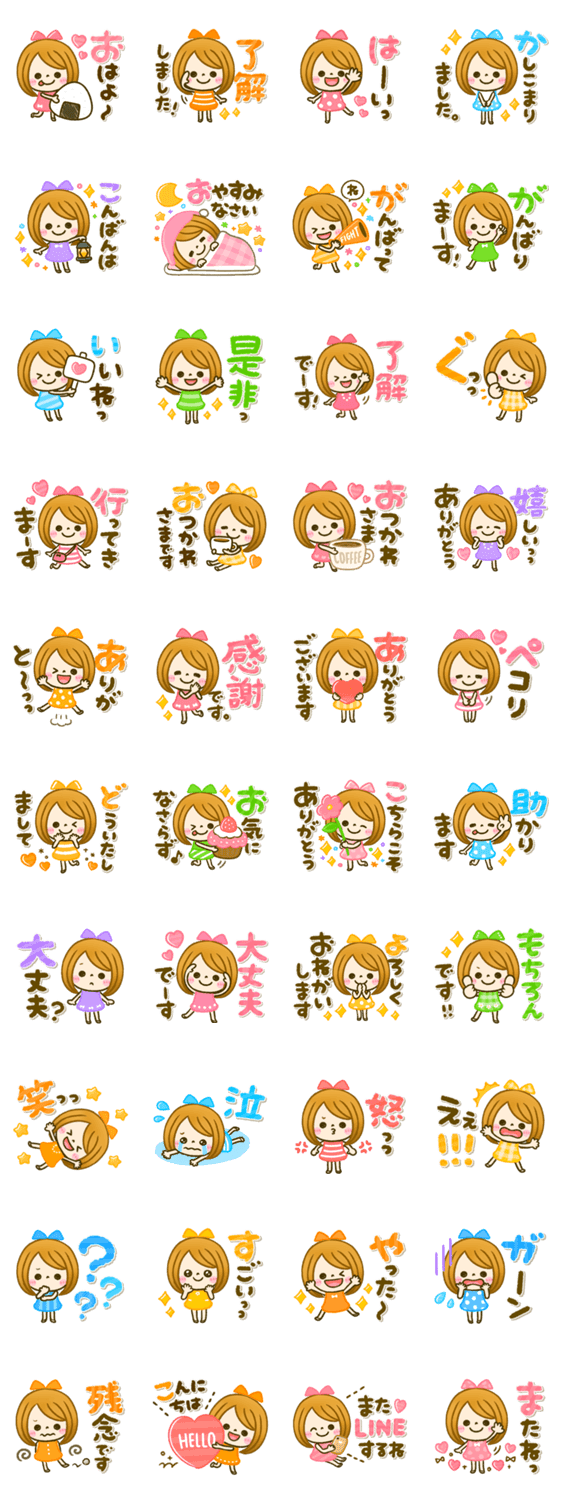 大人可愛い女の子のカラフルな見やすいデカ文字スタンプです♡