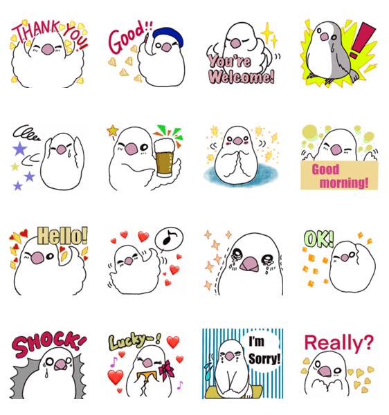 文鳥のぴーちゃんスタンプ第2段です。日常生活で使いやすいものを作りました。