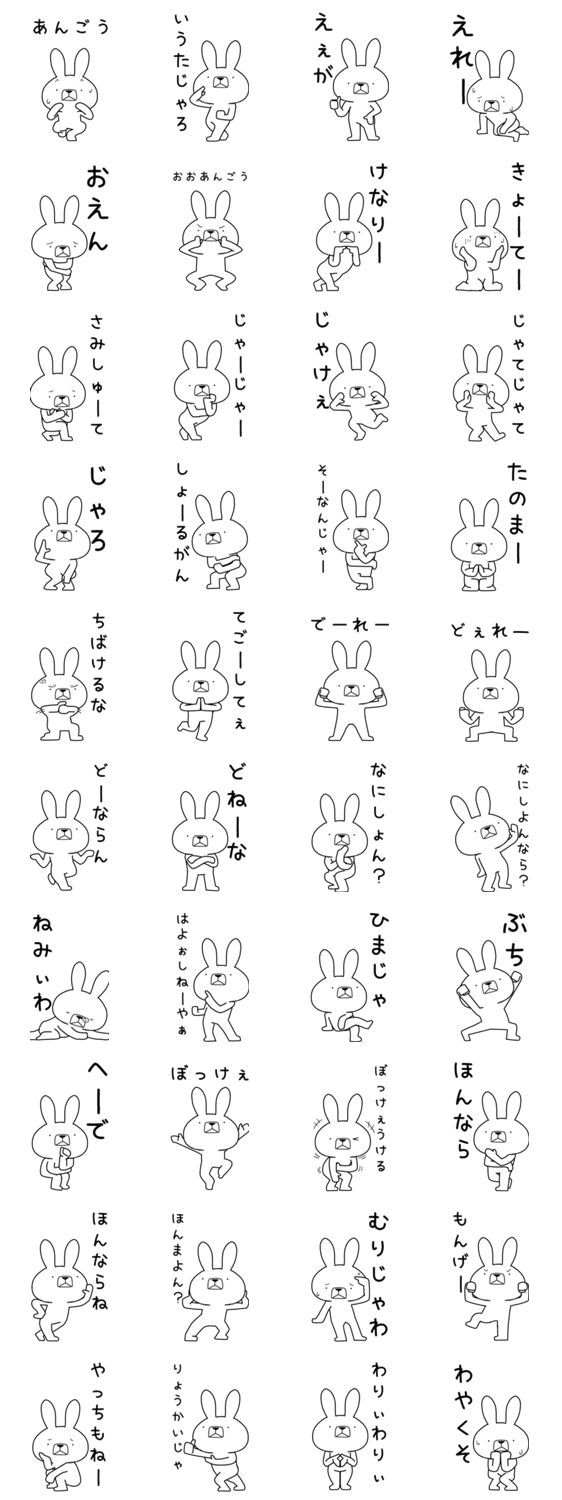 いろんな方言をつかううさぎのスタンプBIG岡山弁編(広島・中国地方。また違う県verに似た方言が見つかるかも) ※このスタンプはトークルームで大きく表示されるBIGスタンプです。