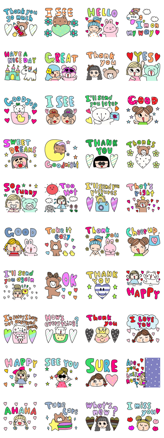 日本語英語韓国語タイ語中国語ございます。絵文字や着せ替えもございます。