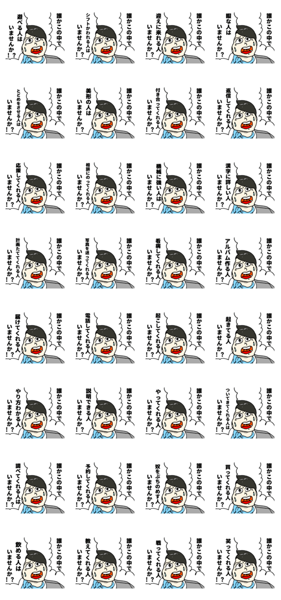 | スタンプ説明 | キャビンアテンダントが何かしら求めてくるスタンプです。 |