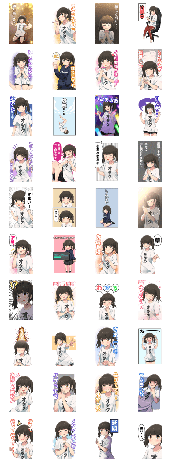 オタクツインテールのBigスタンプです!是非オタ活に使用してください!語彙力は低めです。 ※このスタンプはトークルームで大きく表示されるBIGスタンプです。