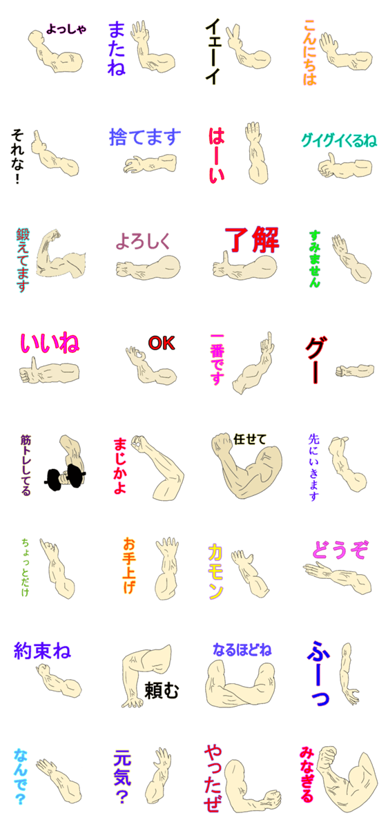 スタンプ説明 マッチョな腕のハンドサインのスタンプです。