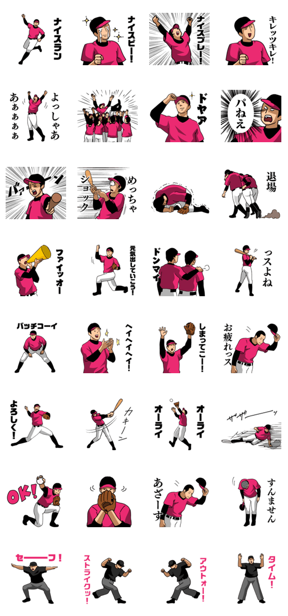野球でよく使う言葉【ピンク】 -LINEスタンプマニア
