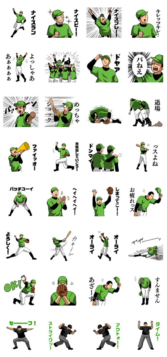 野球でよく使う言葉【緑】 -LINEスタンプマニア