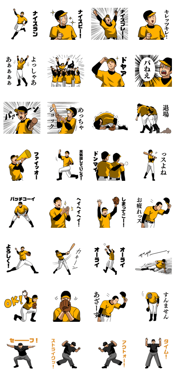 野球でよく使う言葉【黄】 -LINEスタンプマニア