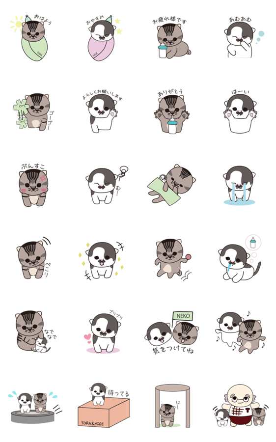 | スタンプ説明 | 双子の子ねこ とらandおひげの可愛いスタンプです |