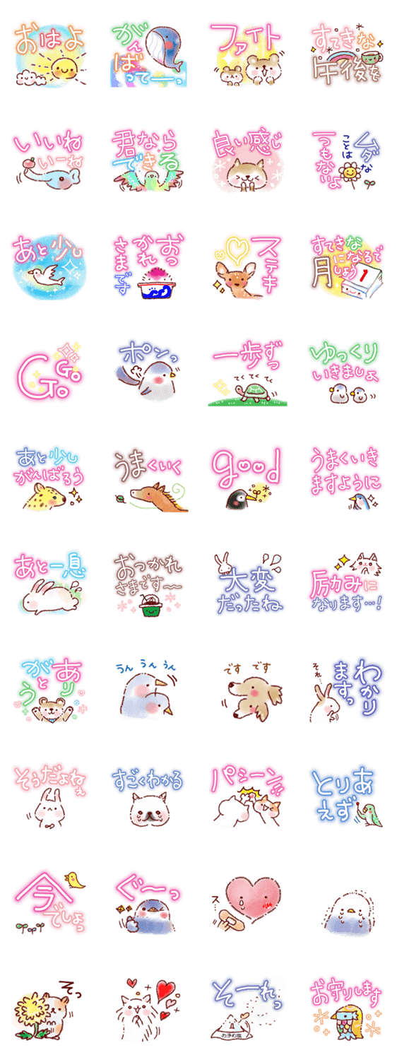 家族・同僚・友達・パートナー・・・大切な誰かを励ましたい・寄り添いたい時に。やさしく、前向きに応援する、スタンプセットです。光る文字で気持ちもUP♪