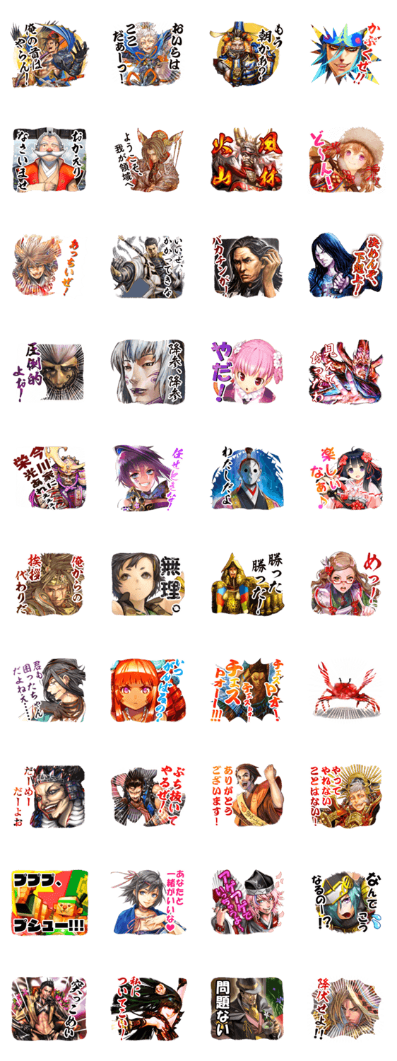 殿ぉ~! セガの大人気アーケードゲーム「戦国大戦」がついに見参!!イケメン傾奇者から可愛い姫まで勢揃いの珠玉のスタンプでござるぅ!
