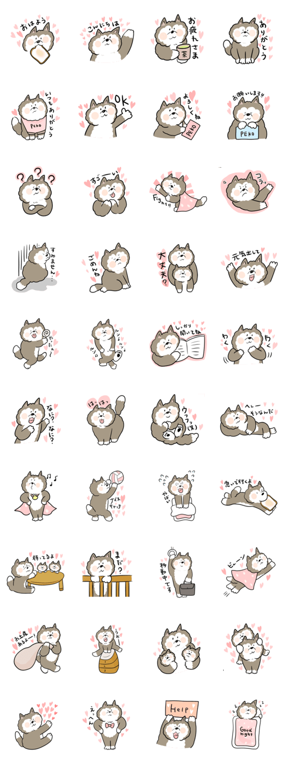 チワワのペコちゃんのハートがいっぱいのLINEスタンプです。日常使いの会話や挨拶を揃えました。友達や家族、恋人とのLINEにぜひ使ってね。