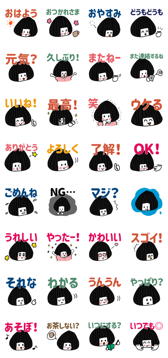 | スタンプ説明 | 毎日使える!デカ文字だから見やすい!ほっこり癒し系を目指す、思春期でわんぱくな女の子、おにぎりちゃんのスタンプ第3弾です。 |
