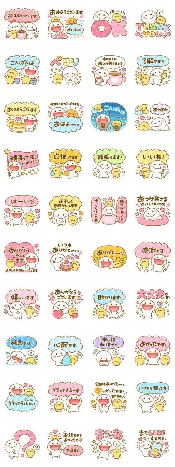 毎日使える言葉がいっぱい♡ふわほわマシュマロ、ちびマロちゃんのカラフルなスタンプです。