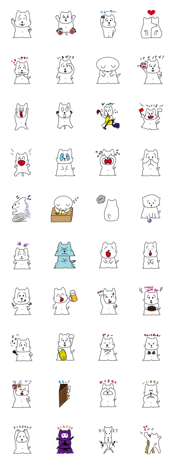 白ネコのあいうえお・・・ってるスタンプ