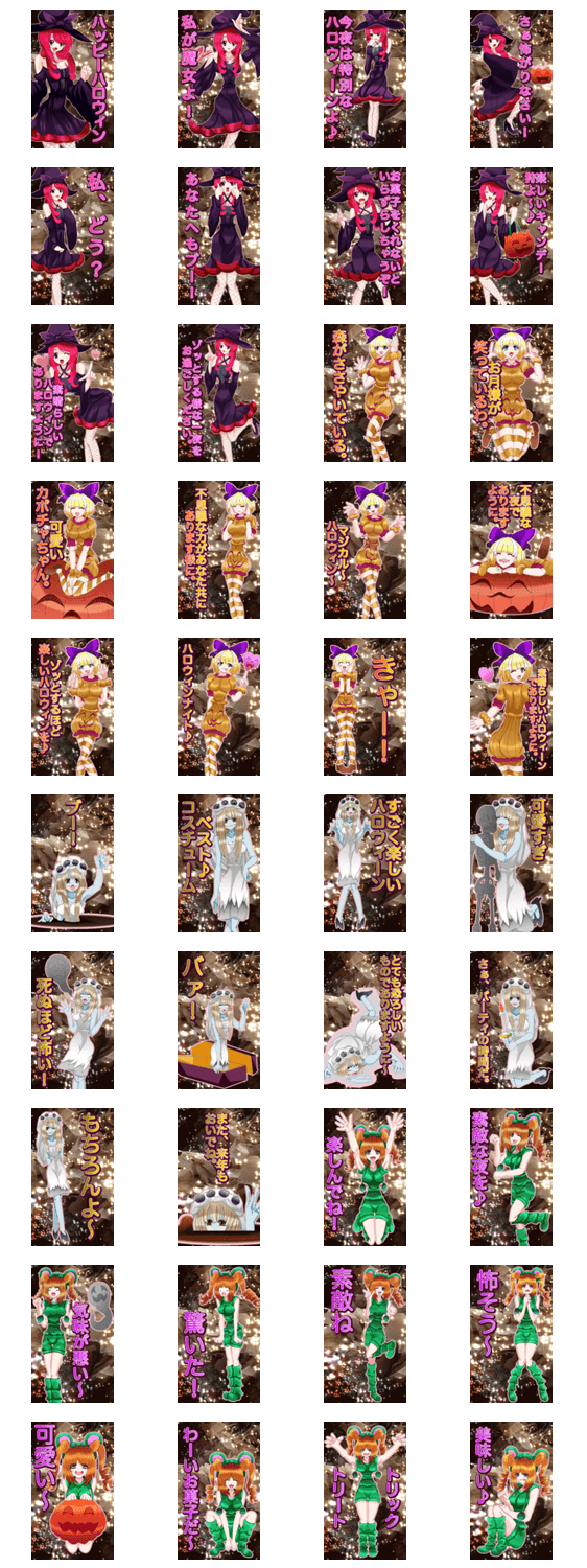 新規描き下ろし!ラブリーハロウィンシリーズのリアルver! ラブリーな魔女.カボチャガール.髑髏姫.カエル女子が 怪しいハロウィンを悪戯やおもてなしでお祝いします。 ※このスタンプはトークルームで大きく表示されるBIGスタンプです。