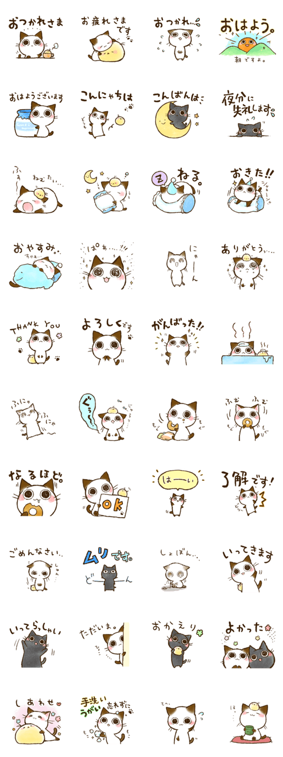 第5弾です。シャム猫のちょこさんの、毎日使えるスタンプです。友達や家族との日常の会話に使ってもらえたら嬉しいです。 着せかえと絵文字も販売中です。