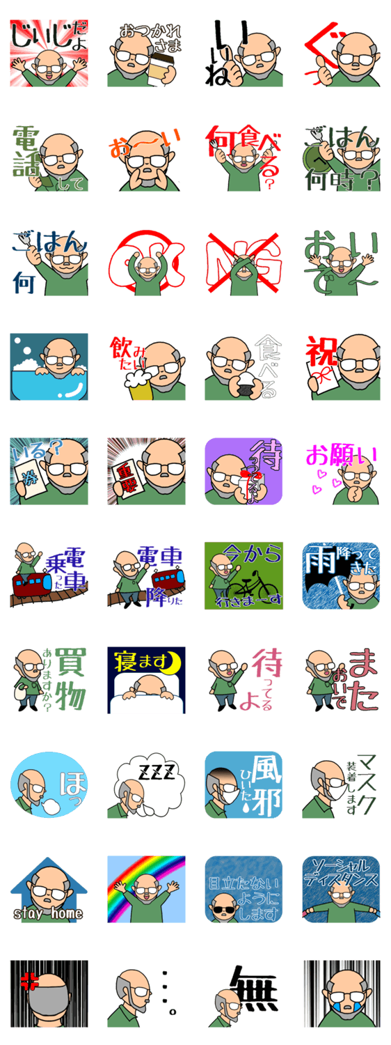緑の服のじいじが普段使えそうなスタンプ01 -LINEスタンプマニア