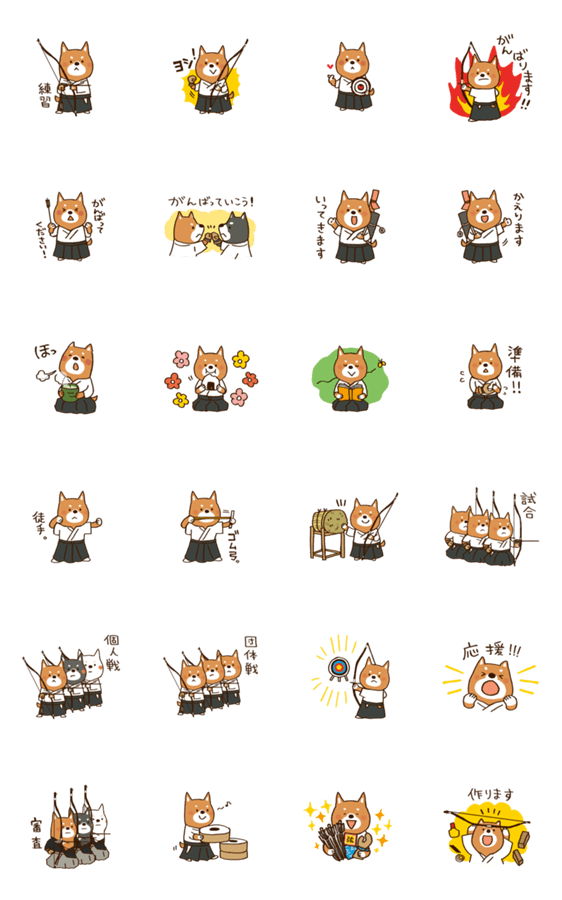 | スタンプ説明 | 練習・試合・日常で使える弓道スタンプ!弓道好きの弓道好きによる弓道好きの為のスタンプ!弓道好きの柴犬「射楽(しゃらく)くん」の可愛い弓道の日常! |