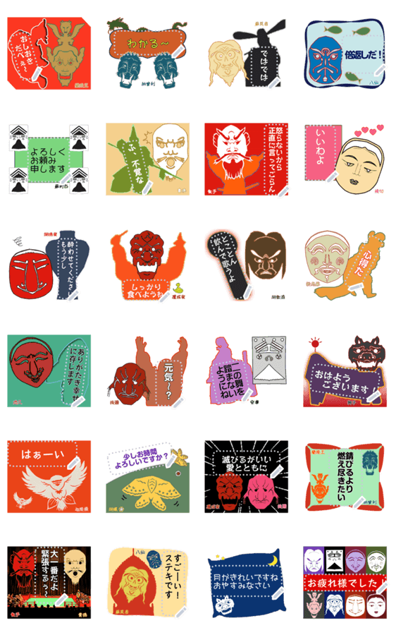 チョキチョキとはさみで紙を切って形を作る伝統芸能「紙切り」で舞楽面を表現! せっかくなので画像化して、LINEスタンプにしちゃいました。 現在この商品は一部のスマートフォン版LINE 10.3.0以上のトークルームでのみ使用できます。動作環境の最新情報はヘルプをご確認ください。