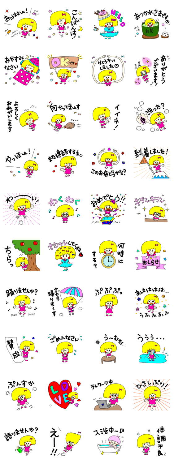 パンナちゃんという名前の女の子の、挨拶やリアクションなど毎日使えるスタンプです。