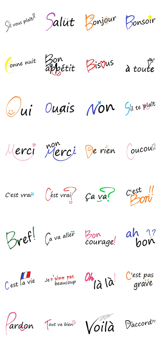 | スタンプ説明 | These stickers are commonly used messages writing in French. |
