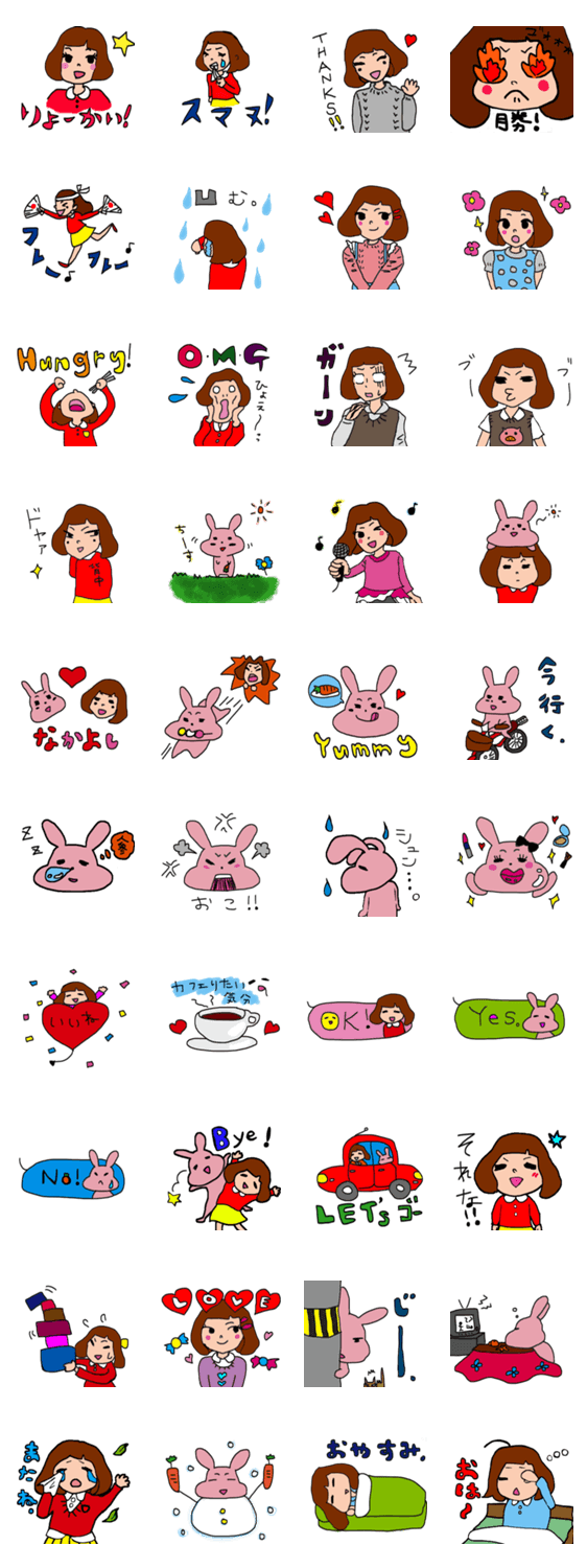 ゆるカワな女の子とうさぎ -LINEスタンプマニア