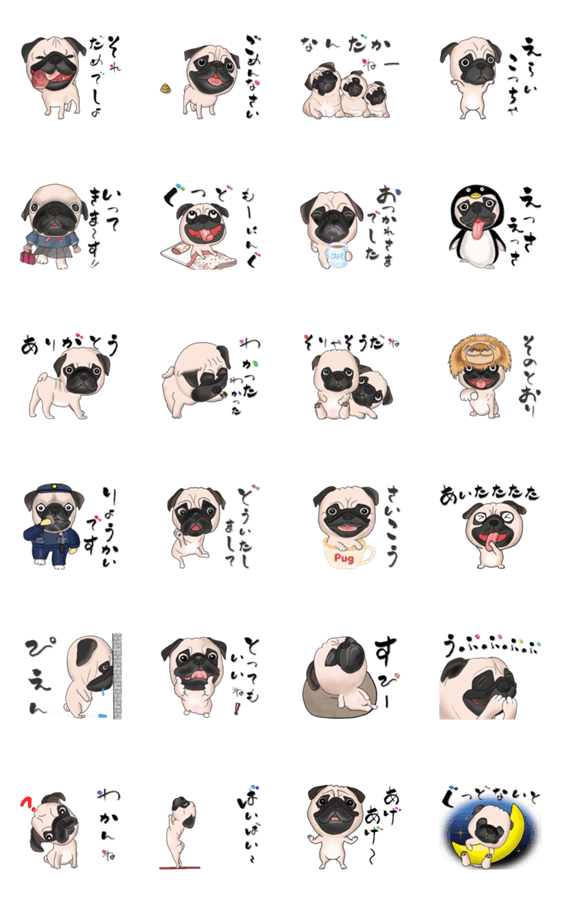ひょうきんなパグ犬の動く日常スタンプです! 元気いっぱいの一日が始まります! ワンコ好きの皆さんにほんの少しでもほんわかな気持ちを感じていただければ嬉しいです。