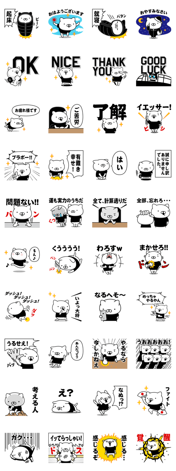 | スタンプ説明 | 黒いTシャツを着た『黒Tにゃんこ』カラーにゃんこシリーズ/毎日使える/日常会話/家族/恋人/友達/猫/ねこ/ おもしろ/ブラック/ぶらっく/くろ/クロ |