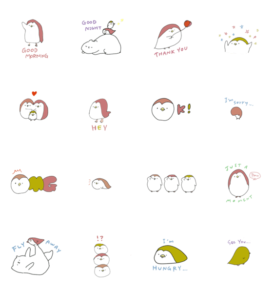スタンプ説明 愛あるカラーのなかよしペンギンズスタンプです。