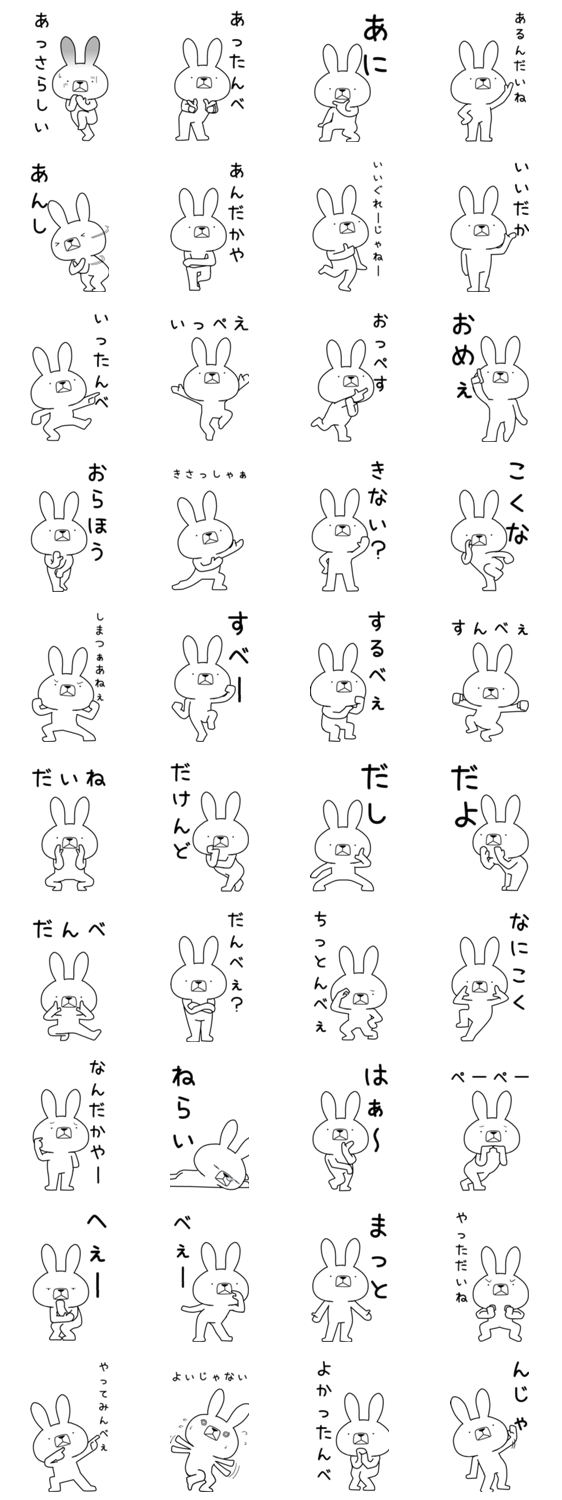 いろんな方言をつかううさぎのスタンプBIG飯能弁編(埼玉。また違う県verに似た方言が見つかるかも) ※このスタンプはトークルームで大きく表示されるBIGスタンプです。