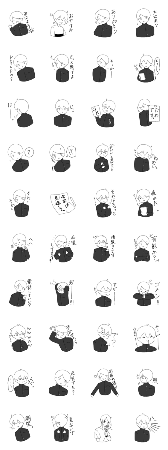 学ラン着てる男子のスタンプです。男性でも使いやすく、を目標に作りました。