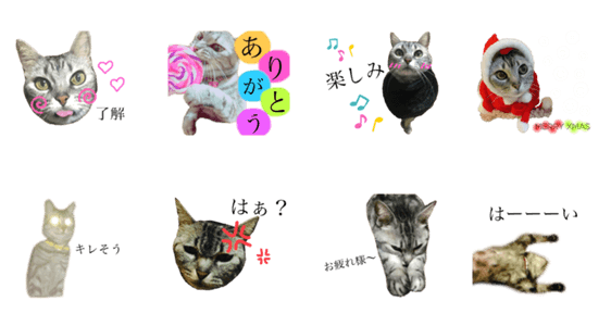 白ネコのあいうえお・・・ってるスタンプ