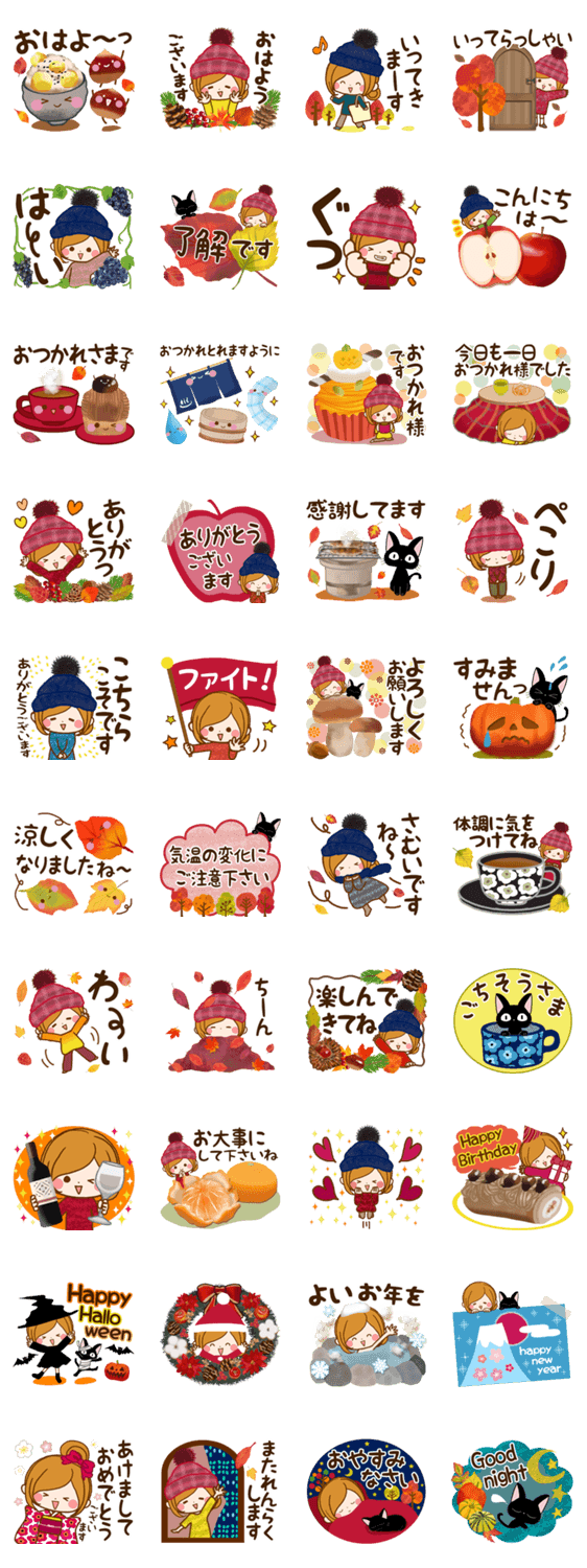 落ち着いた大人かわいい色合いの秋冬スタンプです♪日常に使いやすい言葉を厳選しました。ほんの少しでも心がやすらぎますように♪「ほのぼのカノジョ」シリーズ