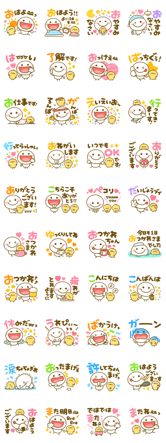 ゆるかわ棒人間とぴよこのカラフルなデカ文字スタンプです♪ なつかしの言葉もちょこちょこ入ってます♡