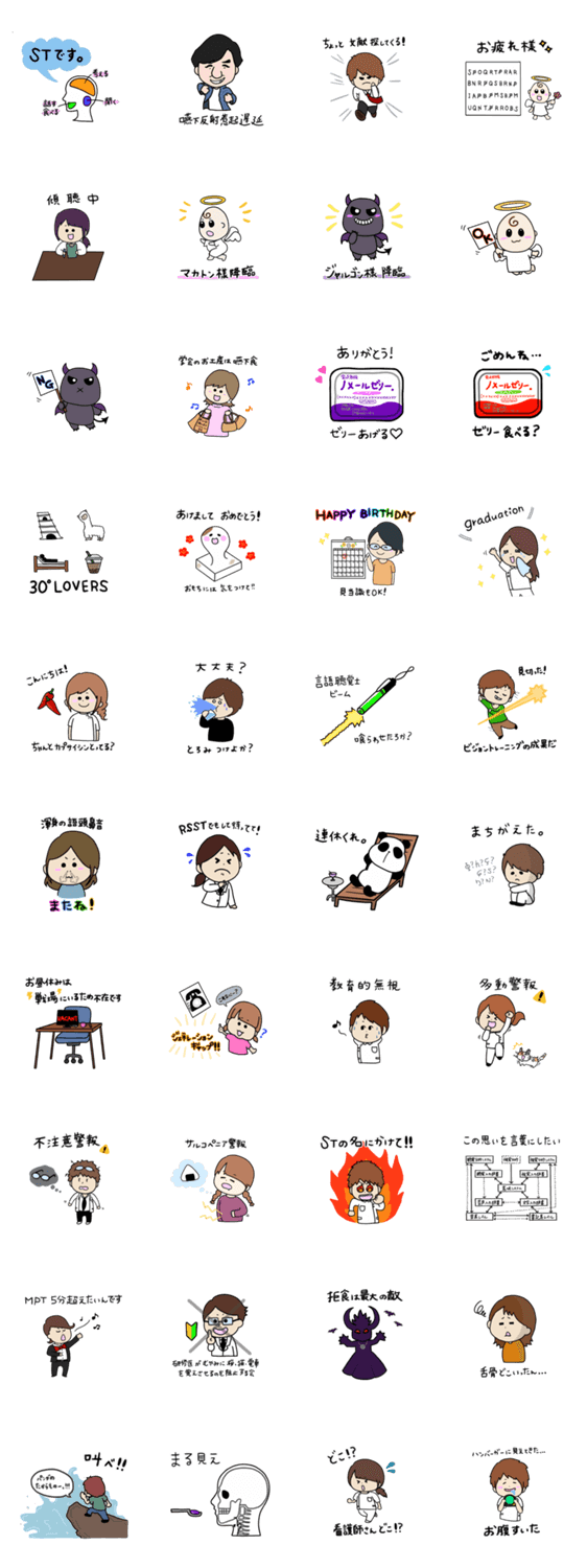 言語聴覚士ならきっと共感してしまう、日常のあるあるを中心にスタンプにしました。 ST自身はもちろん、医療従事者を目指している学生さん、リハビリスタッフの方にも!