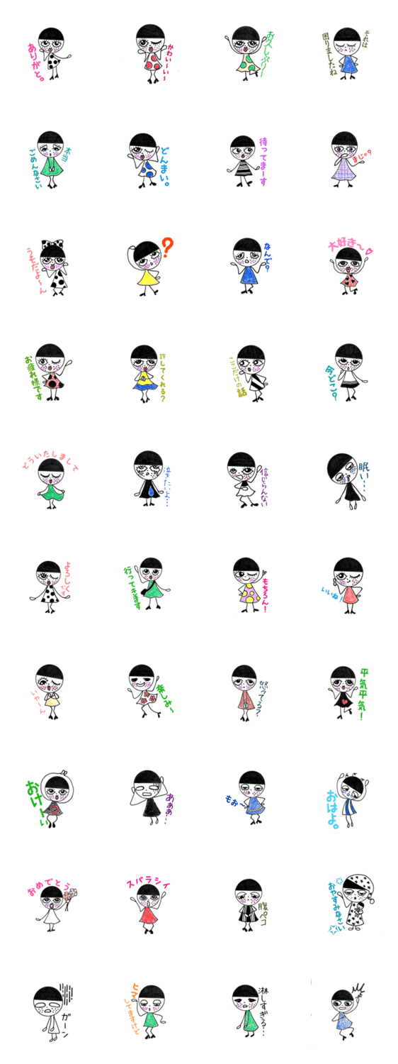 お待たせしました。日本語Ver.です。そばかすがチャームポイントの女の子。オシャレが大好き。毎日使いたくなるスタンプです。よろしくお願いいたします。