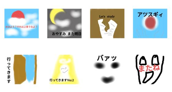 | スタンプ説明 | LINE Creators Studioでつくったスタンプです。最後のやつは自分がよく書いてるキャラです |