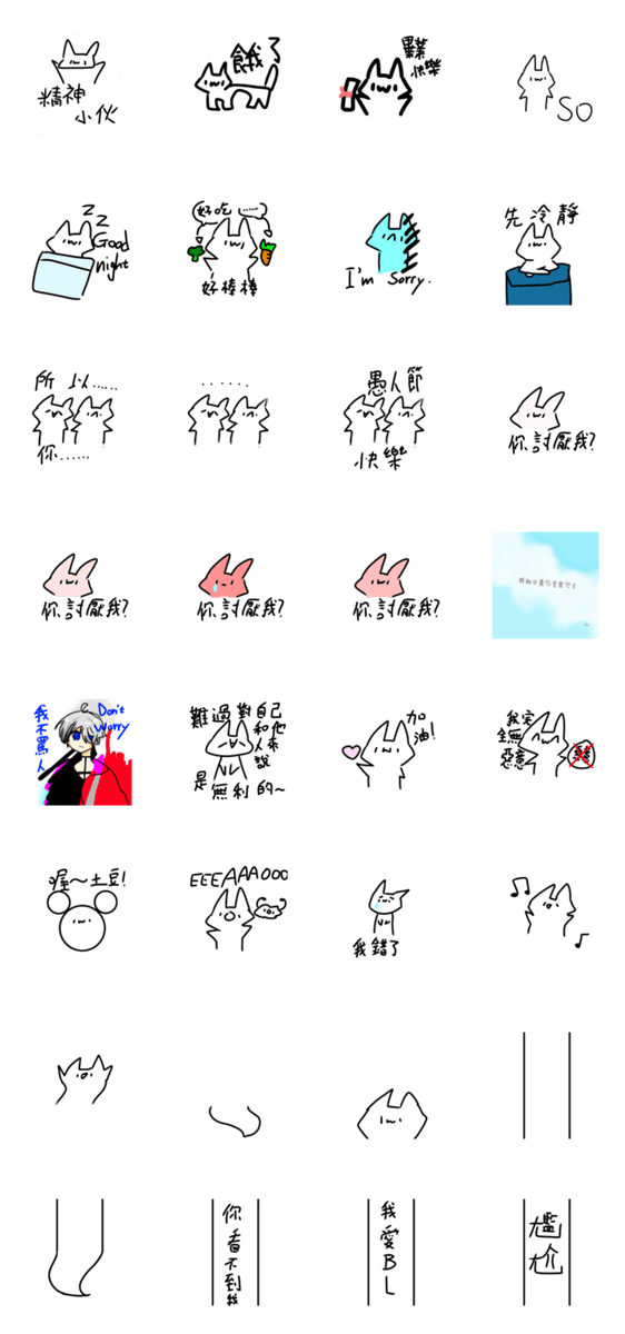 白ネコのあいうえお・・・ってるスタンプ